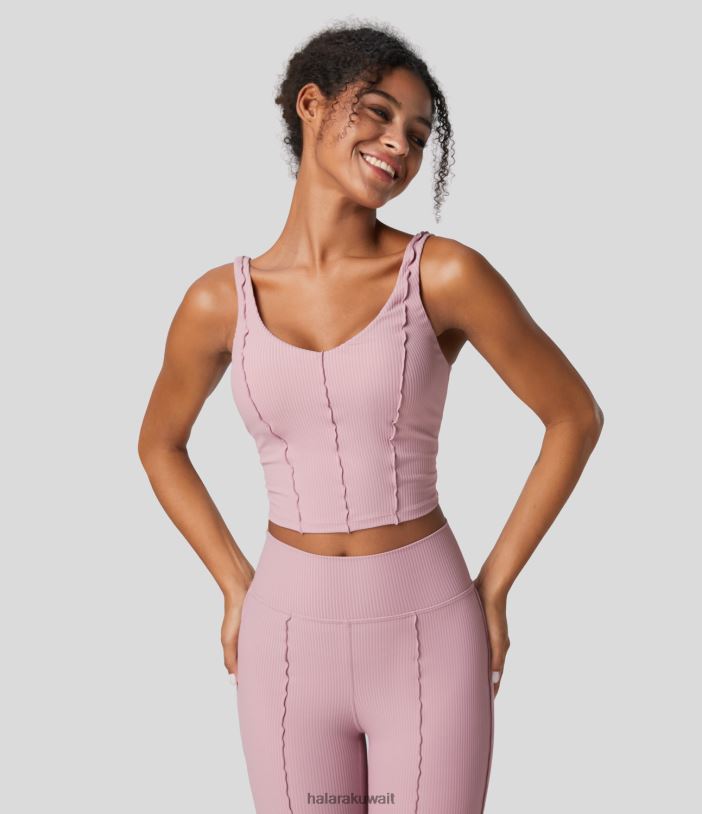 ملابس رياضية خبازي مبيض TDP4N1712 نحيف Halara قميص يوغا قصير مضلع بدون ظهر مزين بزخرفة الخس
