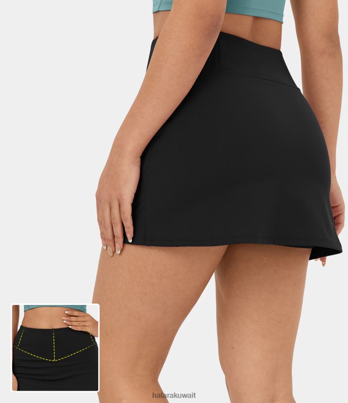 ملابس رياضية أسود TDP4N579 نحيف Halara مشد عالي الخصر 2 في 1 بجيب جانبي وتنورة كاجوال صغيرة