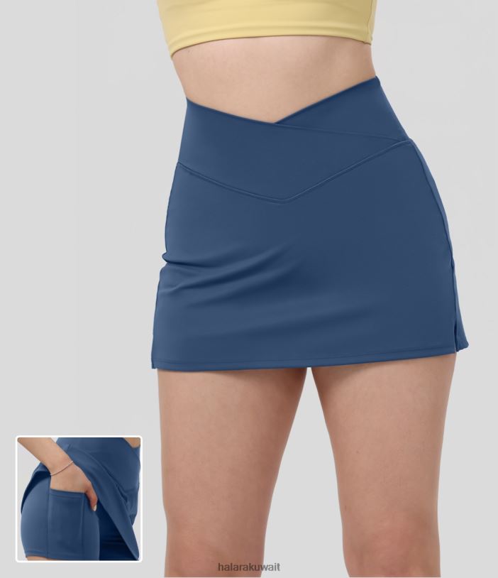 ملابس رياضية الفيروز الداكن TDP4N680 نحيف Halara تنورة Softlyzero من القطيفة ذات الخصر العالي وحاشية مقسمة وجيب جانبي 2 في 1 على شكل حرف A