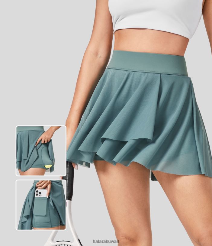 ملابس رياضية ندى الصباح الأخضر TDP4N559 نحيف Halara تنورة تنس صغيرة متموجة ذات خصر عالٍ وشبكة متباينة 2 في 1 وجيب جانبي