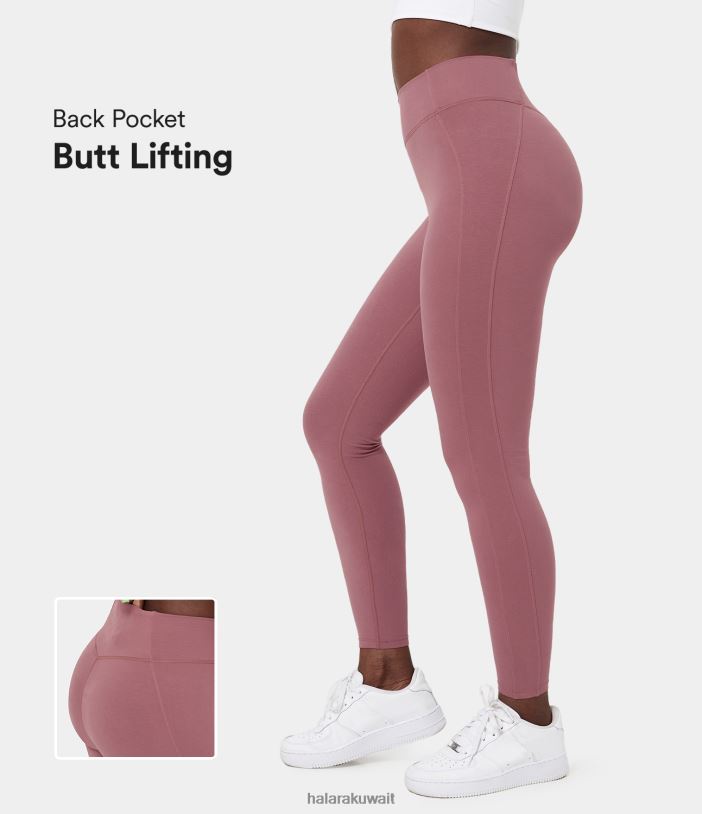 ملابس رياضية وردة ذابلة TDP4N1522 نحيف Halara بنطال ضيق يومي مصنوع من القطن بجيب خلفي عالي الخصر مقاس 7/8