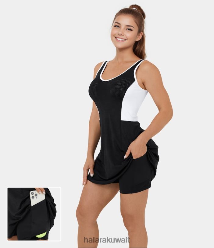 ملابس رياضية إبداعي TDP4N948 نحيف Halara فستان تنس نشط شبكي متباين اللون بدون ظهر مكون من قطعتين وجيب جانبي