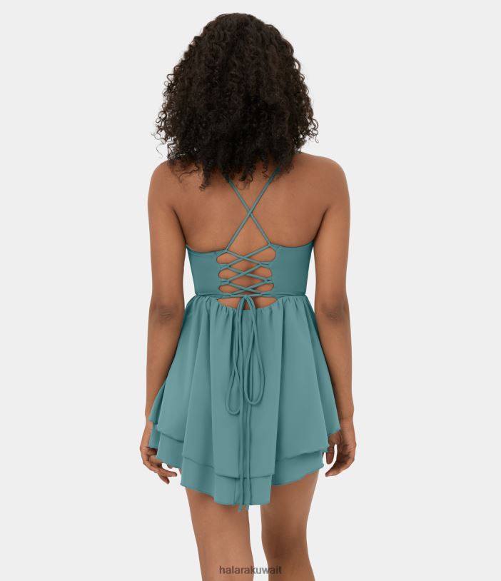 ملابس رياضية الأزرق المعدني TDP4N793 نحيف Halara فستان كاجوال سهل الارتداء بدون ظهر ورباط وكشكشة وسريع الجفاف