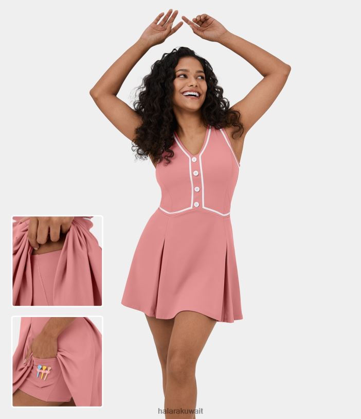 ملابس رياضية الحلوى الوردية TDP4N955 نحيف Halara كتلة ملونة مطوية من قطعتين بجيب جانبي ميني غولف نشط وجيب تي شيرت للجولف