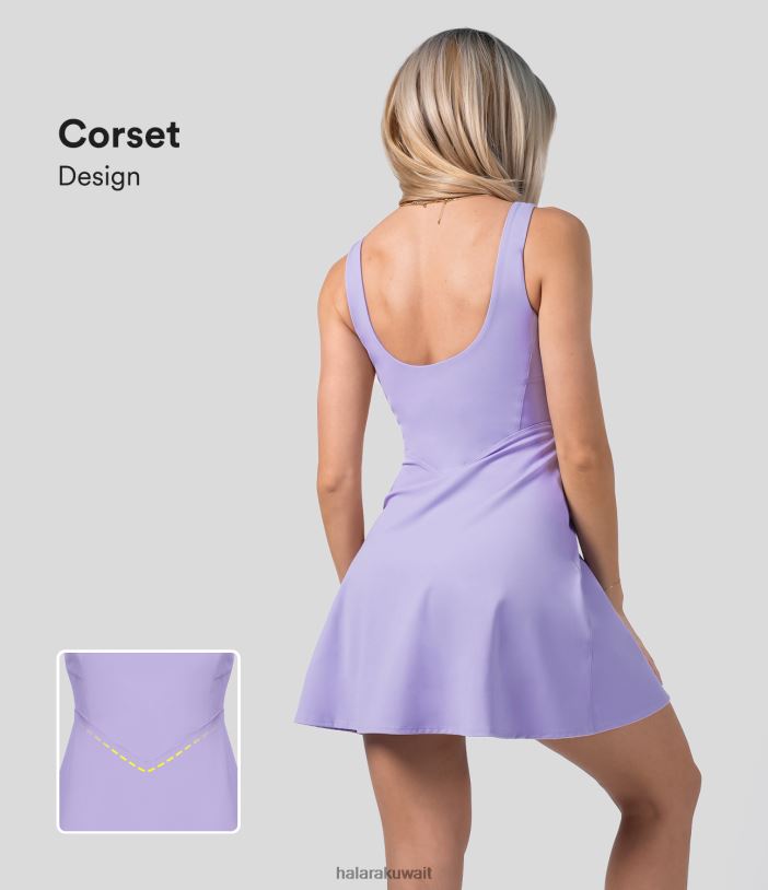 ملابس رياضية الخزامى TDP4N891 نحيف Halara فستان Softlyzero من القطيفة بدون ظهر قصير ومتوهج من Pickleball النشط
