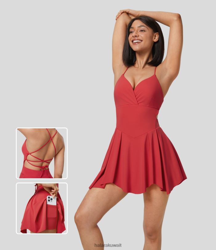 ملابس رياضية السالسا TDP4N969 نحيف Halara فستان يوجا نشيط برباط متقاطع بدون ظهر 2 في 1 جيب صغير سهل الانزلاق لليوجا