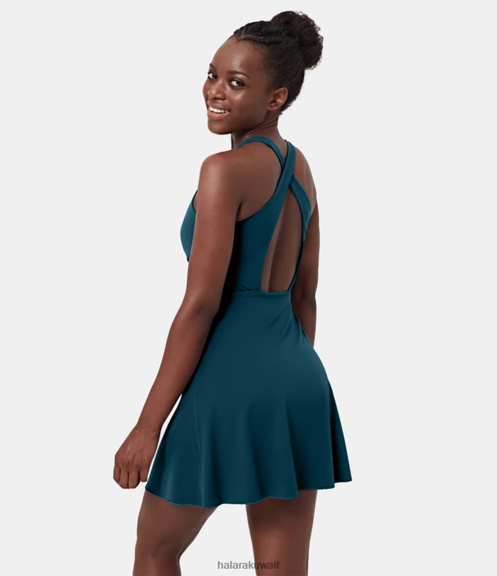 ملابس رياضية الفيلق الأزرق TDP4N912 نحيف Halara فستان Softlyzero Airy بدون ظهر متقاطع 2 في 1 بجيب رائع الملمس وكرة البيسبول النشطة