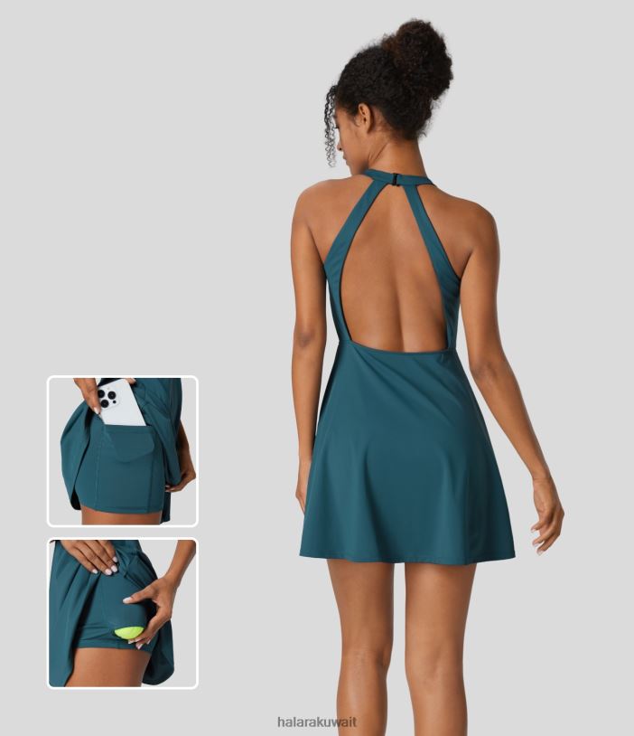 ملابس رياضية اليعسوب TDP4N966 نحيف Halara فستان تنس قصير 2 في 1 بدون ظهر وجيب سريع الجفاف ومتوهج