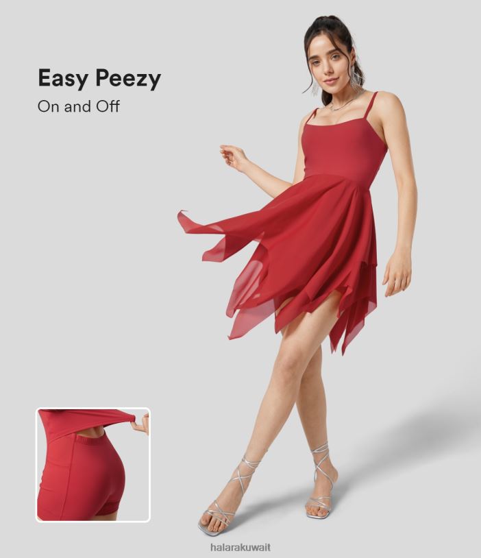 ملابس رياضية سامبا TDP4N831 نحيف Halara فستان رقص نشط بحاشية هانكي شبكية متباينة 2 في 1 بجيب - إصدار سهل من Peezy