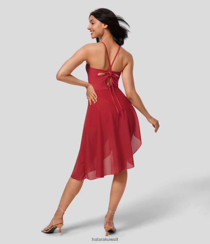 ملابس رياضية سامبا TDP4N895 نحيف Halara فستان رقص نشط بدون ظهر وربطة خلفية متباينة وحاشية غير متماثلة 2 في 1
