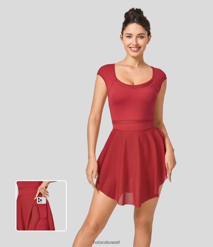 ملابس رياضية سامبا TDP4N968 نحيف Halara فستان رقص شبكي متباين 2 في 1 بجيب جانبي