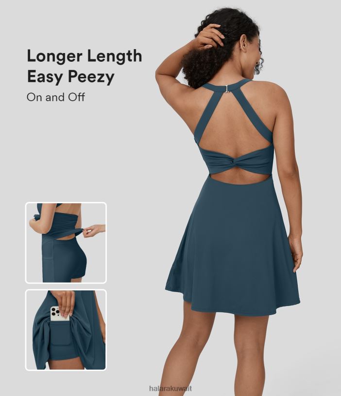 ملابس رياضية ماجوليكا الأزرق TDP4N771 نحيف Halara فستان رقص ملتوي بدون ظهر، فستان نشط، طول أطول، إصدار سهل