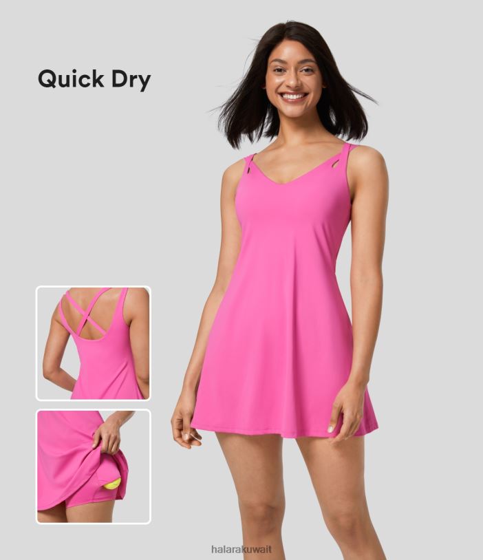 ملابس رياضية مسحوق وردي رائع TDP4N894 نحيف Halara فستان التنس النشط بدون ظهر متقاطع 2 في 1 وجيب جانبي سريع الجفاف وسهل الانزلاق