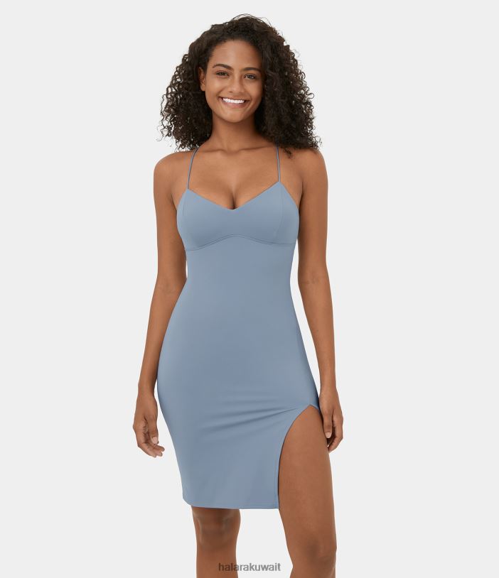 ملابس رياضية ندفة الثلج الزرقاء TDP4N848 نحيف Halara فستان كاجوال قصير من Bodycon بدون ظهر وأربطة
