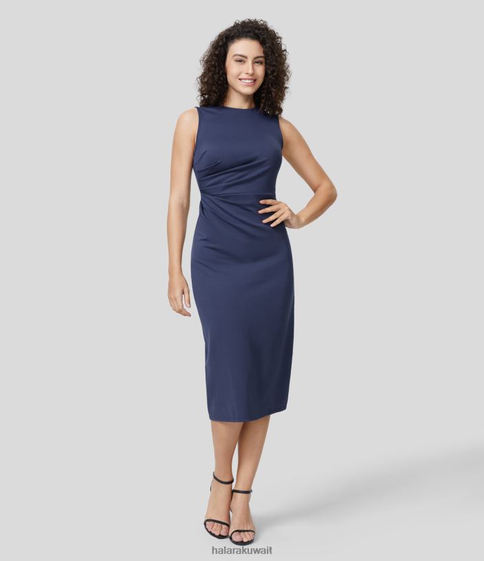 ملابس القوات البحرية TDP4N1246 نحيف Halara فستان عمل متوسط الطول برقبة دائرية بدون أكمام وحاشية مكشكشة