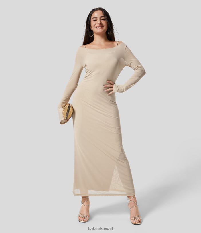 ملابس اللوز المتجمد TDP4N1126 نحيف Halara فستان حفلات ماكسي من قطعتين بأكمام باغودا شفافة