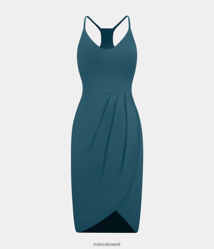 ملابس ماجوليكا الأزرق TDP4N1195 نحيف Halara فستان ميدي كاجوال مكشكش مكشوف الظهر ومقسم بظهر متسابق وحاشية غير متماثلة - بدون بطانة