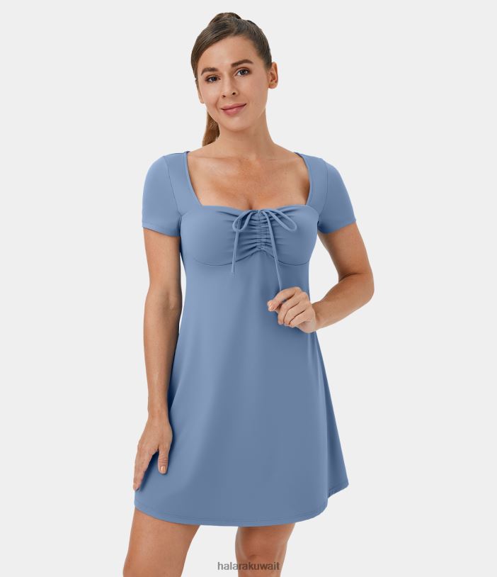 ملابس ما لا نهاية TDP4N1001 نحيف Halara فستان قصير كاجوال مكشكش بأكمام قصيرة