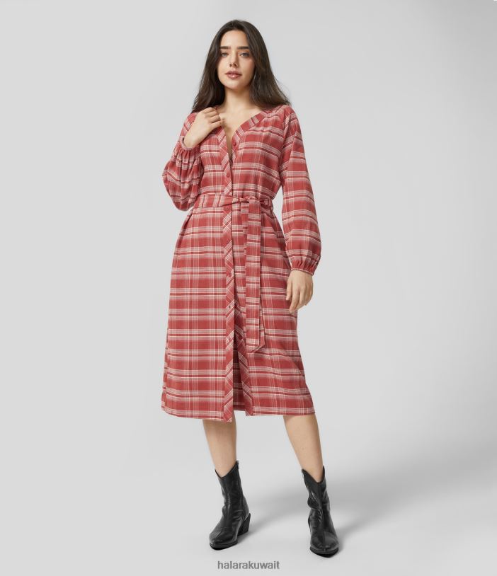 ملابس منقوشة غروب الشمس TDP4N1203 نحيف Halara فستان ميدي كاجوال بفتحة رقبة على شكل حرف V وأكمام طويلة وربطة عنق أمامية